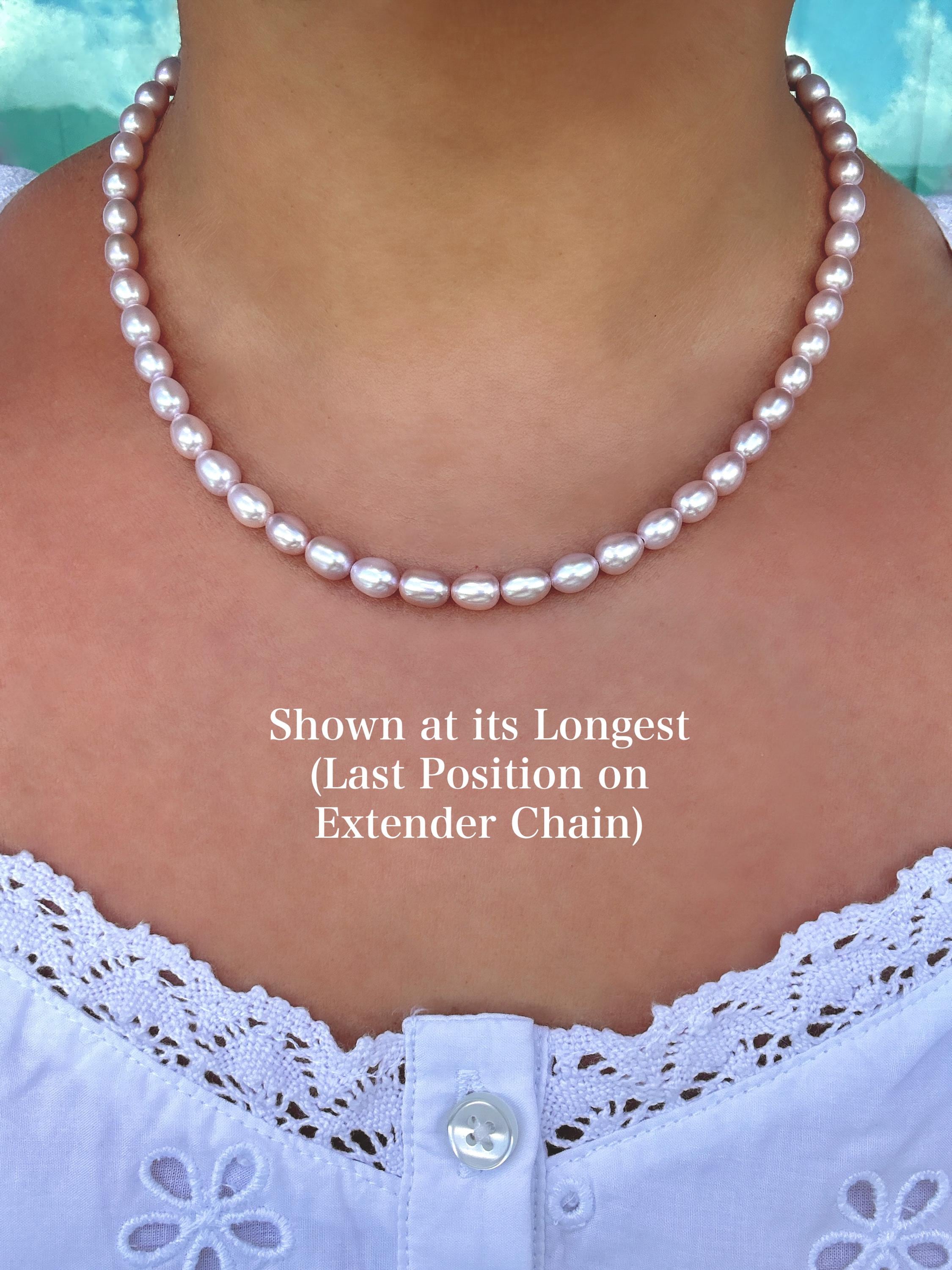 This necklace features a beautiful strand of purple/pink freshwater pearls and has an adjustable length between 15.5"-17.5".
